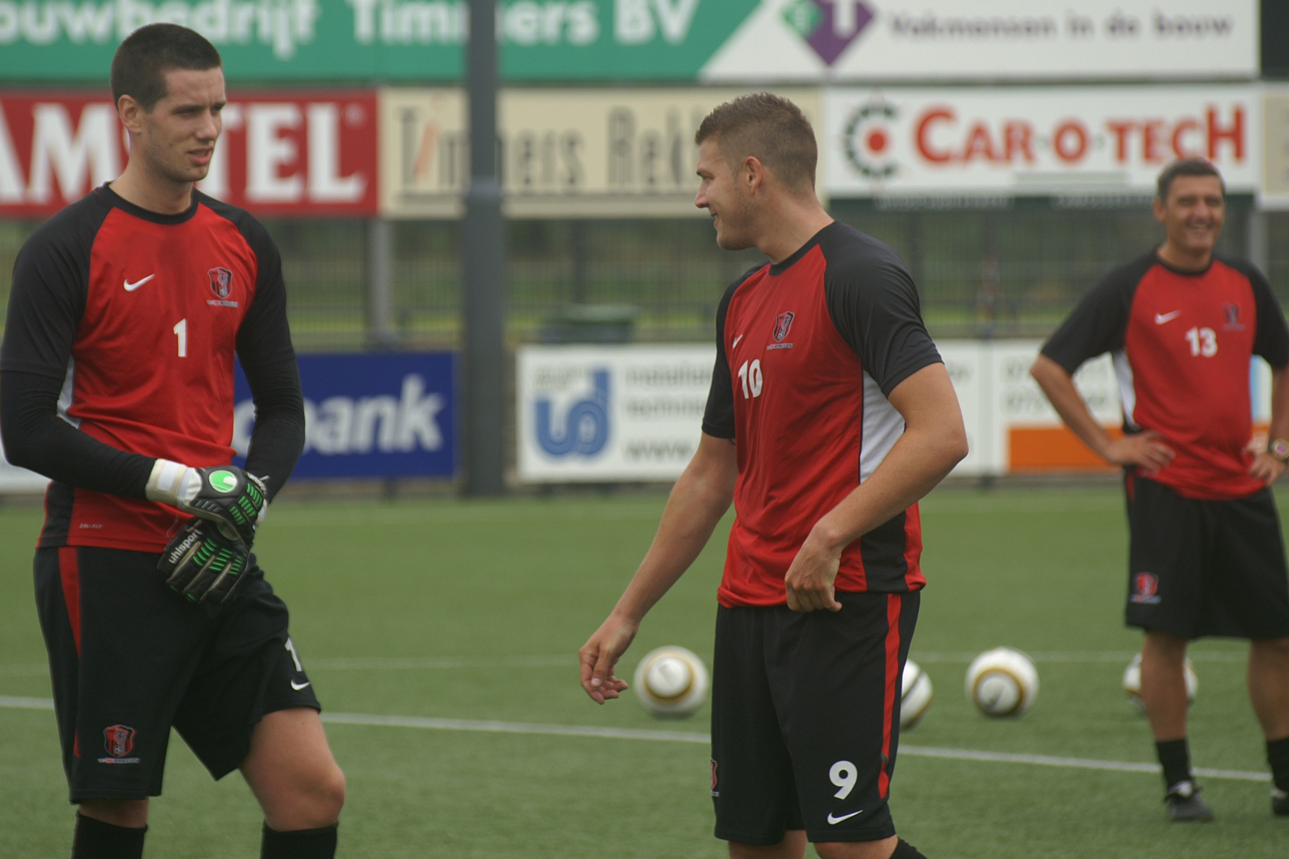 Met naast assistent-trainer Nico Koningstein ook backs Randy van Heijnsbergen en Guus Habraken en de nieuwe doelmannen Dirk Smulders (BMC) en Tom Stupers (Emplina) als afwezigen, beschikte trainer Dennis Dekkers over een flinke groep. “Joyry van Beers, Rick van Pinxten en Jordy de Wit zijn doorgestroomd vanuit het tweede elftal”, vertelt de oefenmeester. “En ook de teruggekeerde Wesley Meeuwsen (Blauw Geel’38) en Bart Tinus (Spakenburg) waren van de partij.” John Laponder was een van de verrassende gezichten. De hoofdtrainer van zaterdag derdeklasser GVV’63 loopt de komend jaar in Rosmalen stage. “John zal in principe het hele seizoen, bij iedere vrijdagtraining, aanwezig zijn in het kader van zijn TC1 trainersdiploma”, geeft Dekkers aan.