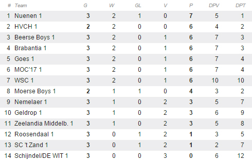 De seizoensopening werd gewonnen van Roosendaal (2-1), maar daarna volgden een 3-1 nederlaag in Goes en dus de 2-3 tegen HVCH. Sprake van een crisis is er bij Nemelaer echter zeker niet. “Nee, dat is er bij ons nooit. We spelen ook helemaal niet onaardig. De tweede helft bij Goes was prima en zondag was het ook niet slecht. We moeten alleen zorgen dat we minder doelpunten weggeven en aanvallend meer brengen.” In dat kader kan spits Van Kempen zelf ook een steentje bijdragen. Sinds kort staat hij niet meer alleen in de punt van de aanval. “We speelden onder Piet (Drijvers, red.) en ook vorig jaar onder Klaas (Wels, red.) 4-3-3, maar dit seizoen in een 4-4-2 opstelling. Aan onze selectie is nagenoeg niks veranderd, maar kijkend de spelers is er voor gekozen om met twee spitsen te gaan voetballen.”