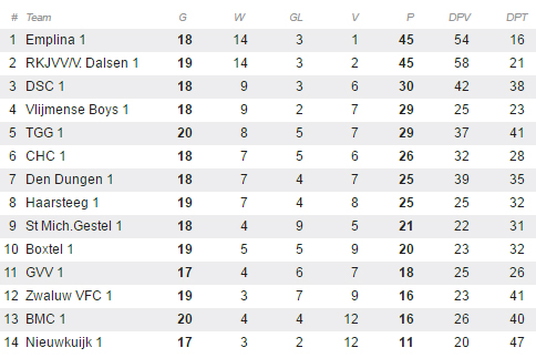 Of Berkelmans in de 3e of 4e klasse actief zal zijn, dat valt nog te bezien. “Komend weekeinde is echt cruciaal”, weet Fitters. “Morgen spelen we tegen Sint Michielsgestel, maandag tegen Boxtel. Dat moeten het liefst 4 of 6 punten worden, maar minstens 3. Lukt dat, dan staan we er gewoon weer bij en kan alles nog gebeuren. En aangezien we al onze 11 punten thuis hebben gehaald…”