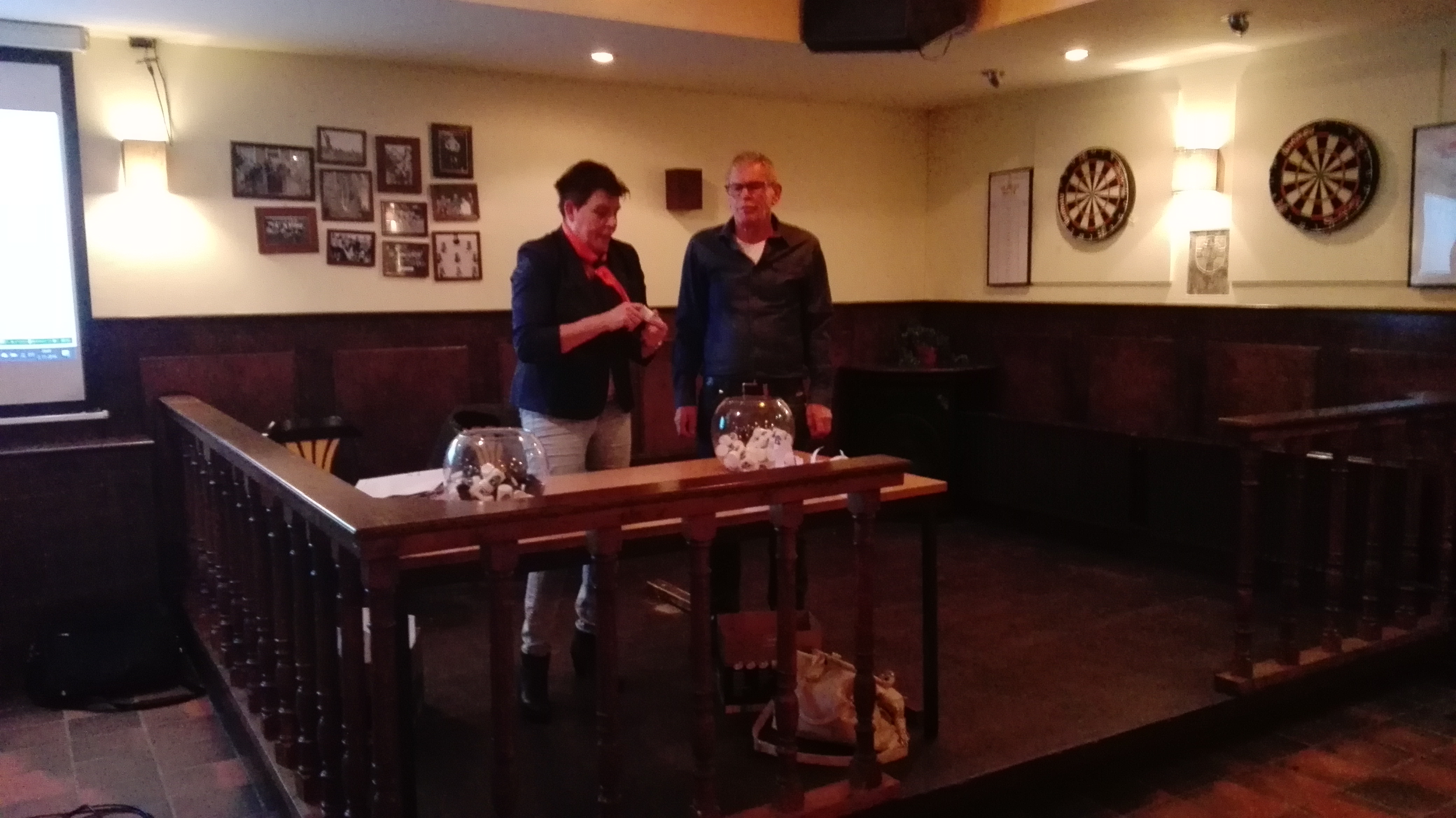 SINT MICHIELSGESTEL – Woensdagavond heeft de loting voor de wedstrijden in de derde en vierde ronde van de districtsbeker plaatsgevonden in de kantine van RKVV Sint Michielsgestel. Cor de Beer, grensrechter van het lokale eerste elftal, en Kelly de Laat, keepster van het damesteam, verrichtten de loting onder dunne belangstelling.