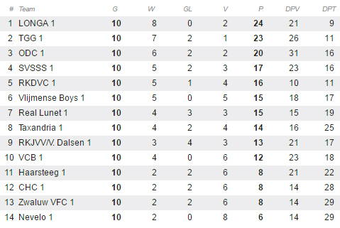 Het seizoen begon met twee nederlagen en dus moest Vlijmense Boys onderaan de ranglijst beginnen. “We kregen toen direct twee sterke tegenstanders”, weet Van Wandelen nog. “RKJVV en Real Lunet leken destijds hoge ogen te gaan gooien, maar zijn nu ook erg afgezwakt.” Daarna volgden overwinningen en nederlagen elkaar in rap tempo op. Van de laatste acht duels werd uit alles verloren, maar thuis werd iedere wedstrijd in winst omgezet. “We creëren elke week genoeg kansen. Als we die zouden benutten, zouden we nu nog hoger staan. Onze spitsen zijn vanaf het begin niet scherp genoeg.”