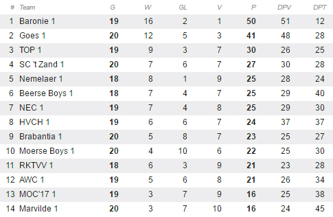 Lang keek Nemelaer stiekem naar boven, maar inmiddels is het oppassen. “In onze competitie kan iedereen van elkaar winnen”, weet Diepens. “Als een ploeg een wat mindere dag heeft, kan die zomaar de klos zijn. Wedstrijden op zeventig procent kunnen wij in ieder geval niet winnen en ik denk dat dat bij bijna elk team in onze competitie zo is. Hopelijk kunnen we dankzij deze zege weer in de flow van voor de winterstop komen en blijven we weg van de onderste vier plekken, die voor degradatieperikelen zorgen.”