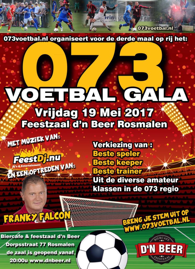 ROSMALEN – Na twee succesvolle edities organiseren we ook aan het einde van dit seizoen weer het 073voetbal Gala. Op vrijdag 19 mei is feestzaal D’n Beer in Rosmalen het domein voor alle voetballiefhebbers uit de regio. Naast de uitreiking van diverse individuele en teamprijzen is er een avondvullend programma, met DJ en optreden van Franky Falcon.
