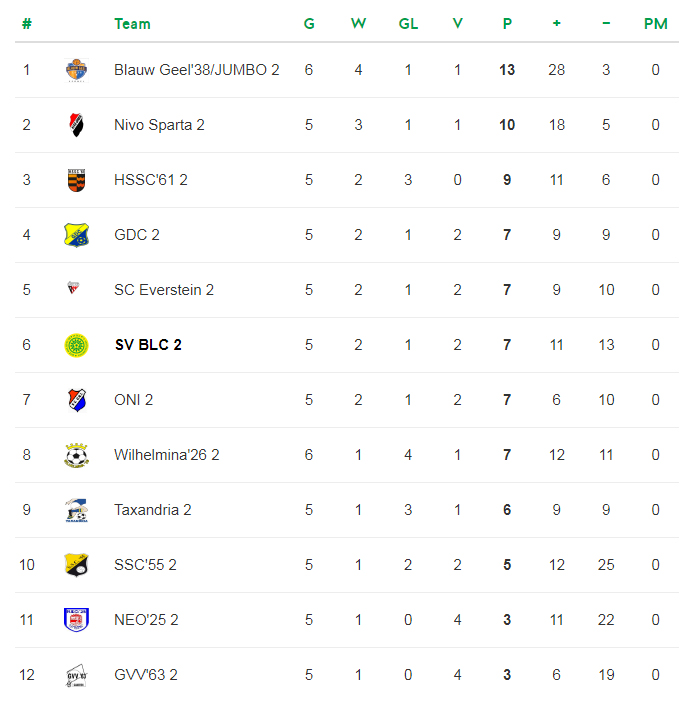 BLC 2 strandde vorig seizoen in de finale van de nacompetitie voor promotie naar de 1e klasse. Met 9 nieuwe spelers en 2 nieuwe assistenten moest trainer Erwin Bax gaan bouwen aan een nieuw team. “Dat doen we in een zwaardere competitie dan vorig seizoen”, legt hij uit. “We hebben er de tweede teams van Nivo Sparta, GDC, HSSC’61 en Wilhelmina’26 bij. En natuurlijk Blauw Geel’38. Een team wat in 2014 is gestart in de reserve 5e klasse, maar al een paar jaar hard klimt op de ladder van het zaterdagvoetbal.”
