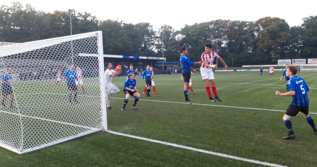 Ze hadden de huidige positie en prima statistieken zelf ongetwijfeld ook Nooit Gedacht, maar het staat er toch echt: de Geffenaren zijn de nummer 3 van de competitie. Na de degradatie uit de 2e klasse, bijna zeven jaar geleden alweer, wisten de Geffenaren alleen in 2017 (met uiteindelijk een 3e plek) een rol van betekenis te spelen. Maar de Geffenaren draaien dit seizoen goed mee bovenin en zijn met 30 treffers de meest scorende ploeg van de 3e klasse. Het werd 5-0 tegen ODC, 6-1 tegen BMC en 9-2 tegen DSC. Zwaluw was tussendoor nog wel ruim te sterk en ook de laatste wedstrijd tegen Den Dungen leverde weer een 3-0 nederlaag op. Desondanks zal Nooit Gedacht tevreden terugkijken op de eerste seizoenshelft, waarin opvallende blikvanger de jeugdige Jari van Erp was. Hij is met 6 treffers een van de topscorers. Alleen Bob van Iersel maakte er nog één meer. Ken Bissels (op de foto koppend tegen SCG’18) is ook dit jaar een van de drijvende krachten op het middenveld.