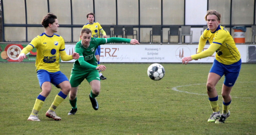 Den Dungen profiteerde, door met 0-3 te winnen bij Schijndel, optimaal. Jongeling Roemer Postma maakte er twee, routinier Jeffrey Sterks scoorde één keer. Op doelsaldo is Den Dungen nu de nieuwe lijstaanvoerder.